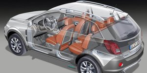 Солидный немецкий кроссовер имеет в распоряжении не менее солидный салон, который к тому же еще и очень функциональный. Эргономичное кресло водителя с регулировкой в 8 направлениях, система климат-контроля, аудиосистема с USB- и AUX-входом, мультимедийный комплекс, подстаканники — все это и многое другое скрыто под кузовом автомобиля марки Opel. Свободного пространства у «паркетника» более чем достаточно — места с лихвой хватит на 5 человек. Значительный простор — заслуга крупных габаритов авто: