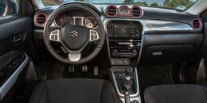 Стильный и функциональный салон нового Витара С отличается вместительностью, прекрасной обзорностью и качественной отделкой. Интерьер украшают элементы красного цвета, подчеркивающие динамичный характер модели.
