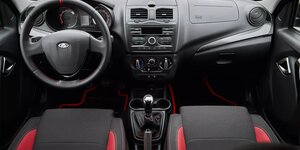 • Отделка руля, чехла КПП кожей с красной отстрочкой