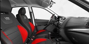 • Обивка сидений ткань. Цвет черный с красными элементами